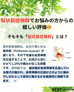 梨状筋症候群による腰〜股関節・脚のしびれでお悩みの患者様】