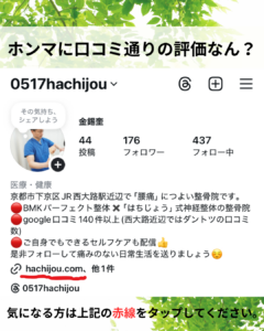 #京都市整骨院 #梨状筋症候群 #坐骨神経痛 #腰痛改善 #股関節痛 #神経整体 #BMK整体 #はちじょう鍼灸整骨院 #西大路整体 #姿勢改善 #根本改善 #柔道整復師 #鍼灸師