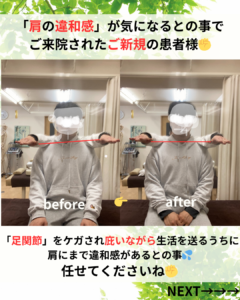 重心バランスが崩れ、肩の張りまで出てしまっていました💦