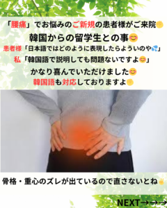 【ギックリ腰でお悩みのご新規患者様がご来院】