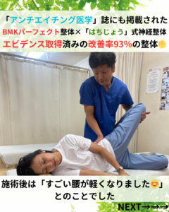 BMKパーフェクト整体 × 「はちじょう」式腰痛整体で