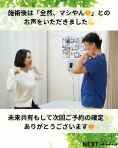 このまま放置するとどうなるか、そして施術でどう変わるかをしっかり共有し、納得していただいてから施術へ💪