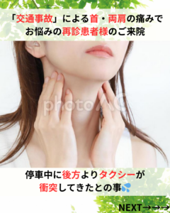 🚗💥 交通事故による首〜両肩の痛みで再診の患者様がご来院