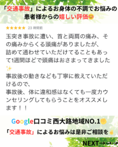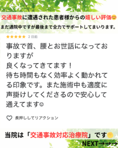 🚗💥 交通事故に遭われた患者様からの嬉しい評価 👍